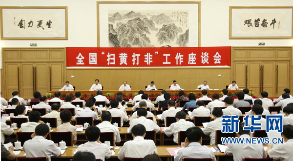 7月23日,全国“扫黄打非”工作小组在京召开座谈会,总结打击互联网和手机网站淫秽色情信息专项行动,分析当前面临的形势,研究部署下一阶段工作。中共中央政治局委员、中央书记处书记、中宣部部长刘云山出席会议并讲话。新华社记者 丁林 摄