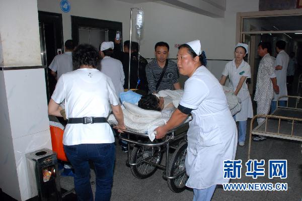 8月25日凌晨,坠机事故幸存者被紧急送往当地医院抢救。新华社发(刘宇 摄)