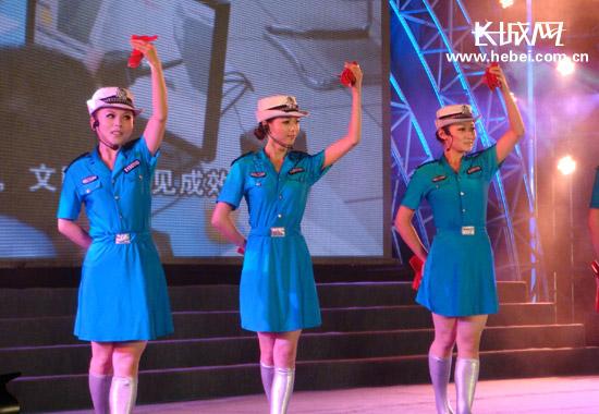 石家庄市公安战线的女警们表演快板。长城网记者 赵晓慧 摄