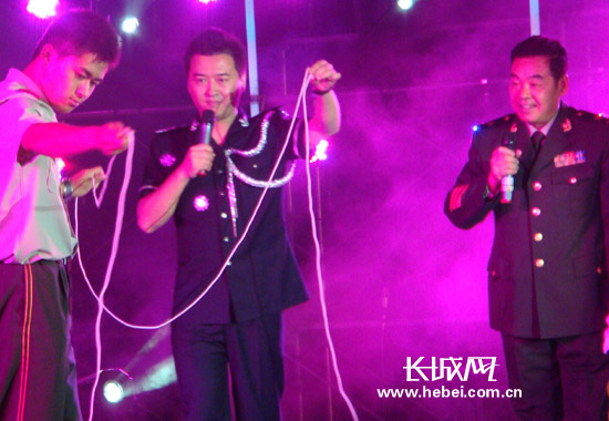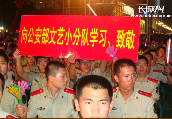 长城网9月15日讯(记者 赵晓慧 刘伟)今天晚上20时,2010年“公安部‘公安文化行’文艺小分队赴基层演出”走进河北,在石家庄市博物馆广场举行首场大型户外演出,精彩的节目吸引了大批市民驻足观看,现场一片沸腾。