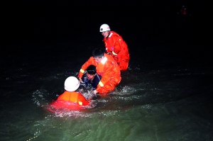 前夜11点31分,彭水县消防大队接到长滩派出所报警称,一名中年男子欲跳江自杀。当消防队员赶到现场时,已是次日凌晨零点。一名30岁左右,身穿条纹毛衣的男子手持石块站在郁江中,与岸上民警对峙,水已经漫至膝盖。男子情绪十分激动,江上水流湍急,如果稍不留神,就可能被卷入水中。
