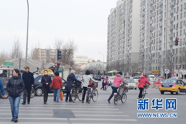 4月9日下午15时,北京市丰台区马家堡西路,许多行人随意穿过马路,对红灯视而不见。 新华网记者 韩元俊摄