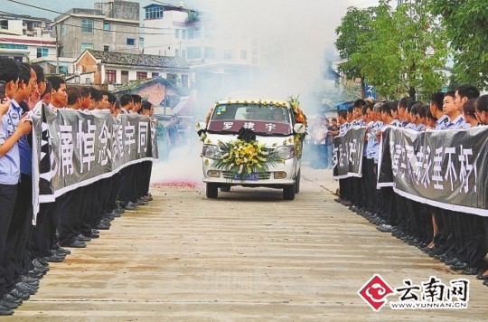 9点45分,向罗建宇同志默哀结束后,罗建宇同志的同班同学代表亲属发言:“今天,你同班同学们来为你送行!罗建宇同学,请一路走好!我们全班同学都是你父母的儿女!”