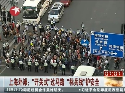 新华网南昌10月5日电(记者 甘泉)国庆长假,上海南京路、外滩等地游人爆棚,红绿灯形同虚设。为此,上海交警发明了“开关式”过马路:红灯时,民警手拉手集体站成一堵墙,拦阻人群止步;而绿灯时,则变换队形成斑马线外的两道人墙,护送人流。
