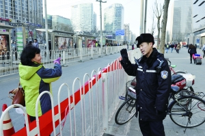 “要去交道口啊,就从这里面进去坐107,没两站地就到。”个子不高,穿着厚厚的警服棉大衣,带着一顶棉帽子的中年人就是张玉虎。他是东直门派出所的一名最普通的民警,每天的任务就是在东直门公交枢纽附近上勤,保证交通枢纽附近的安全有序。