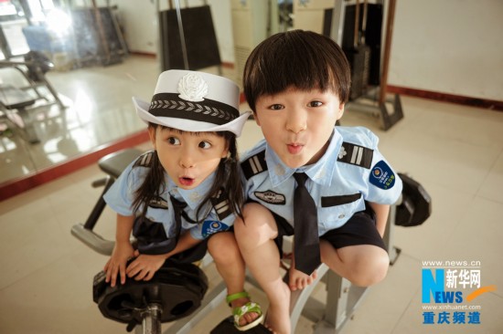 图片共有九张,图片中的娃娃们穿着“儿童版”的警服,时而坐在警用摩托上卖萌扮鬼脸,时而“一脸严肃”的敬着礼,一会儿“一本正经”站在消防车面前装酷……据“平安渝中”微博负责人介绍,这组照片是专门为“圆梦警队”活动第二季“小鬼当家”活动拍摄,两位“萌娃”的家长是“平安渝中”微博粉丝,在得知需要拍摄宣传照时,第一时间就报名参加了。