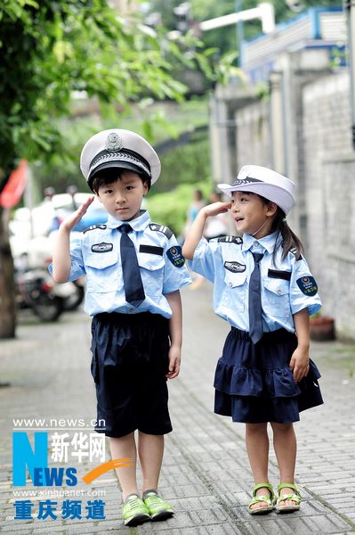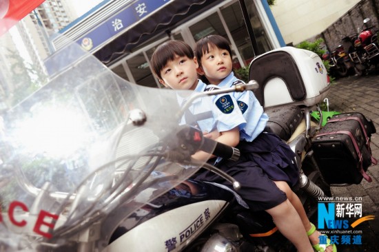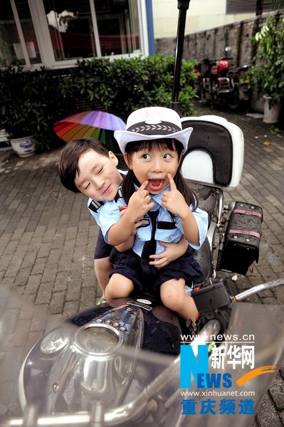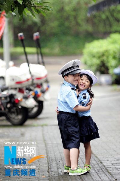 新华网重庆频道7月18日电(记者 赵紫东) “平安渝中”新浪微博昨日发布了一组“萌娃警察”图片,图片中虎头虎脑、聪明伶俐的一男一女两个娃娃时而摆出酷劲十足的Poss,时而做出“两小无猜”的亲密动作,满满地都是浓浓的“青梅竹马”范儿,引起网友一阵阵惊呼:“娃这么萌,心都要化了!”,截止到18日9时,该微博已经转发1300余次。