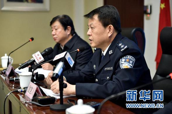 太原市公安局长汪凡(右)在“12·13”案件新闻发布会上(1月2日摄)。 新华社记者 詹彦 摄