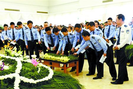 上海警察殉职 市委书记韩正、市长杨雄作批示:因公牺牲(追悼会现场图)