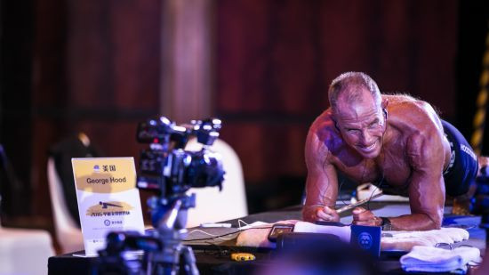 5月14日平板支撑世界杯挑战赛当天,海军退役军官、世界纪录的保持者乔治·胡德叫板中国北京特警毛卫东,两人分别带领国内外10位平板支撑界的精英选手强强对决。
