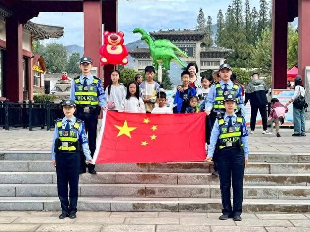 丹桂飘香,国旗飘扬。在国庆期间,蒙山公安立足实际,组织开展了“我和国旗合个影”活动,以此来激发广大游客的爱国心。