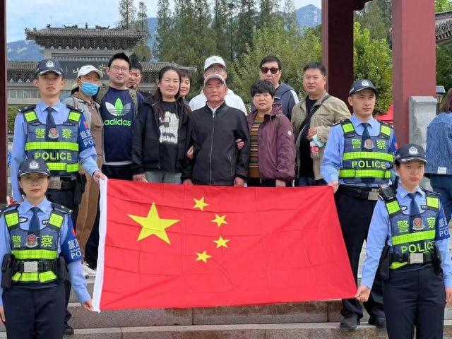 国旗红+警察蓝激发游客爱国心 蒙山公安组织开展“我和国旗合个影”活动