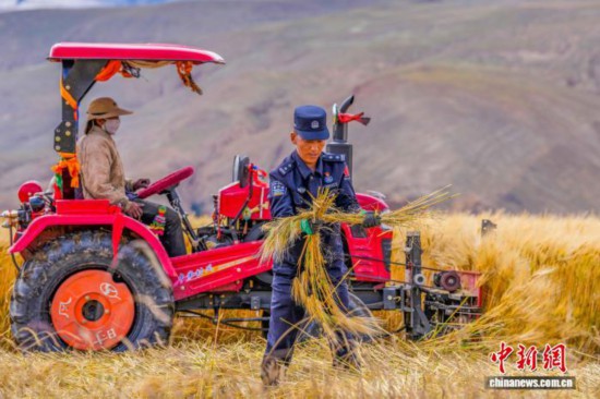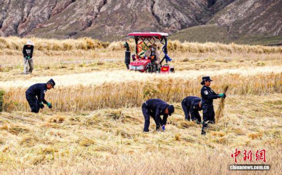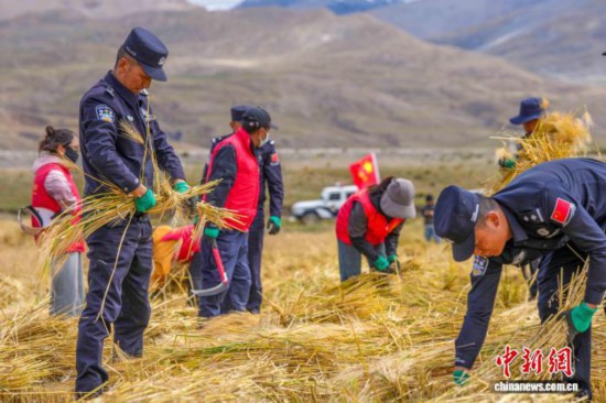 西藏日喀则民警助农秋收 来源:中新网 作者: 发布时间:2025-10-08 14:45:40 浏览次数: 次 【字体:小 大】 金秋时节,青稞飘香。23日,西藏日喀则边境管理支队涅如麦边境派出所民警们深入田间,在广袤的田野上,与农牧民一同俯身劳作,挥镰收割,抢收青稞。 图为民警在田间抢收青稞。叶轶 摄图为民警在田间抢收青稞。叶轶 摄 图为民警在田间抢收青稞。叶轶 摄 涅如麦边境派出所始终心系民众冷暖,全力以赴解决民众急难愁盼问题,在完成执法执勤和维护稳定的岗位职责的同时,用一个个看得见的实际行动赢得了辖区民众一致认可。(叶轶) 终审:dongyi 【打印正文】