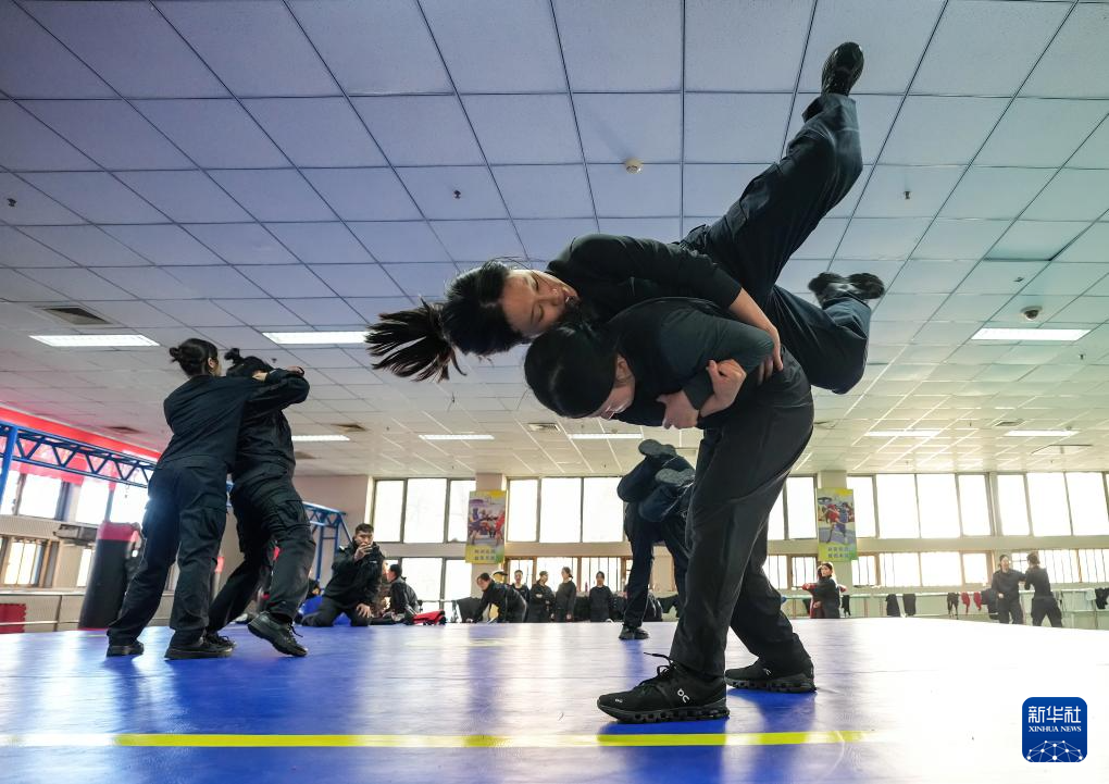 10月20日,参训女刑警在进行抓捕格斗训练。