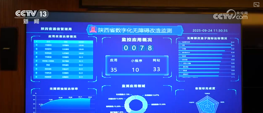 同时,陕西省通信管理局专门开发了“陕西数字无障碍监测平台”,重点监测包括交通、金融等涉及民生9大领域78个重点互联网应用,对其信息无障碍改造进度进行常态化监控和督促整改。