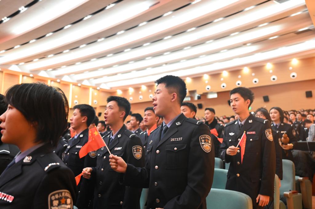 为纪念“一二·九”运动90周年,弘扬爱国主义精神,引领广大青年学生重温光荣历史,激发爱国热情与时代担当,12月9日19时,由党委宣传部、团委主办,学校警乐团、学生艺术团承办的“忠诚的誓言”—— 纪念“一二・九”运动 90 周年专场音乐会在学校礼堂举办。校领导、校属各单位主要负责同志、公安部直属单位2025年度新警培训班学员代表及1100余名师生在铿锵激扬的交响声中,回溯抗战烽火岁月、感悟伟大抗战精神。