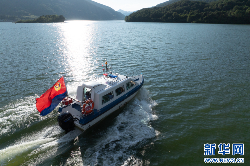清流县公安局森林警察大队民警驾驶巡逻艇在九龙湖水域巡逻。新华网发(黄芝生 摄)