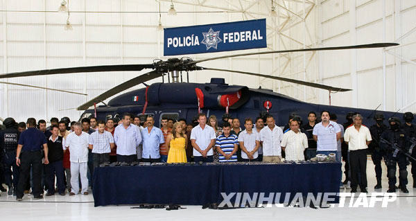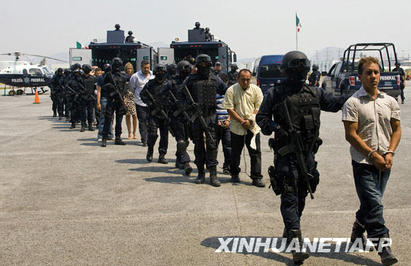 墨西哥警方逮捕数十名贩毒团伙成员 来源:新华网 作者:佚名 发布时间:2009-04-22 08:04:54 浏览次数: 次 【字体:小 大】 4月19日,在墨西哥首都墨西哥城,墨联邦警察押送被捕的贩毒集团成员。44名墨西哥“法米利亚”贩毒集团成员4月18日在米却肯州莫雷利亚被捕。新华社/法新 4月19日,在墨西哥首都墨西哥城,被警方押解的的贩毒集团成员面对媒体。44名墨西哥“法米利亚”贩毒集团成员4月18日在米却肯州莫雷利亚被捕。新华社/法新 智能标签: 墨西哥警方 贩毒 相关内容 【打印正文】