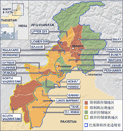 英媒制作地图显示塔利班在巴基斯坦控制范围